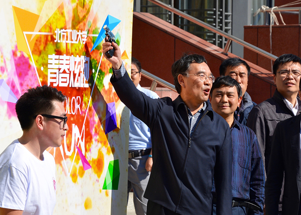 5月12日下午,由校團(tuán)委和理學(xué)院體育教研室共同主辦、校學(xué)生會(huì)承辦的第30屆體育節(jié)“青春炫跑”(彩色跑Color Run)活動(dòng)在毓秀廣場(chǎng)舉行。校長(zhǎng)鄭文堂、學(xué)生工作部部長(zhǎng)李云馳、理學(xué)院院長(zhǎng)鄒建成、校團(tuán)委書(shū)記何有華、體育教研室主任邵恒忠,各學(xué)院副書(shū)記、輔導(dǎo)員,以及500多名學(xué)生參加了此次活動(dòng)。