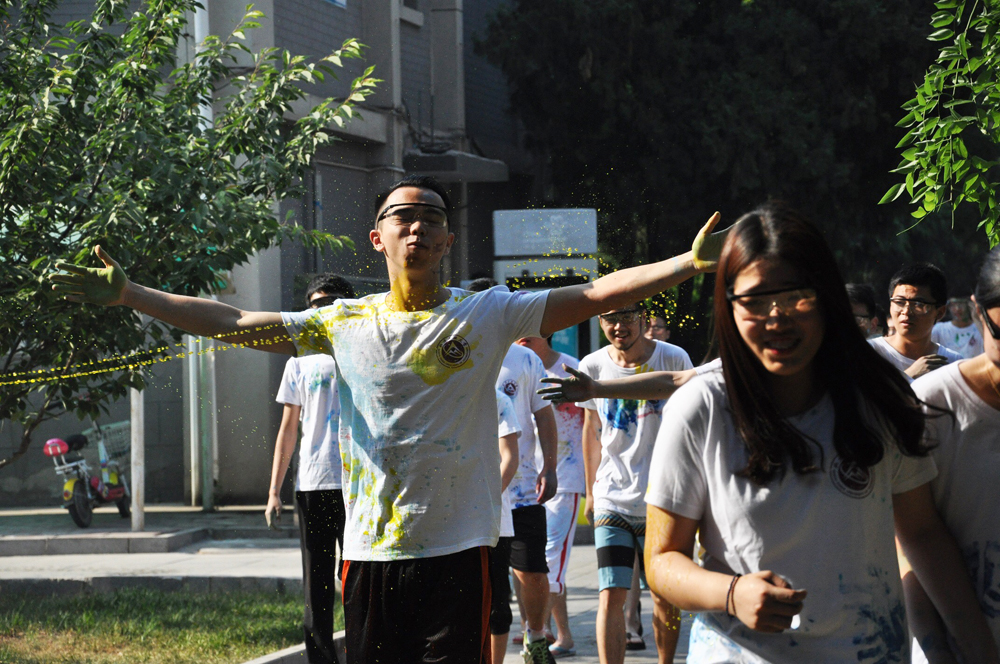 此次彩跑活動共設置彩色噴灑點4個,紅、綠、藍、黃四種顏色的顏料噴灑到跑步同學的衣服上,增加了運動的活力與趣味性。