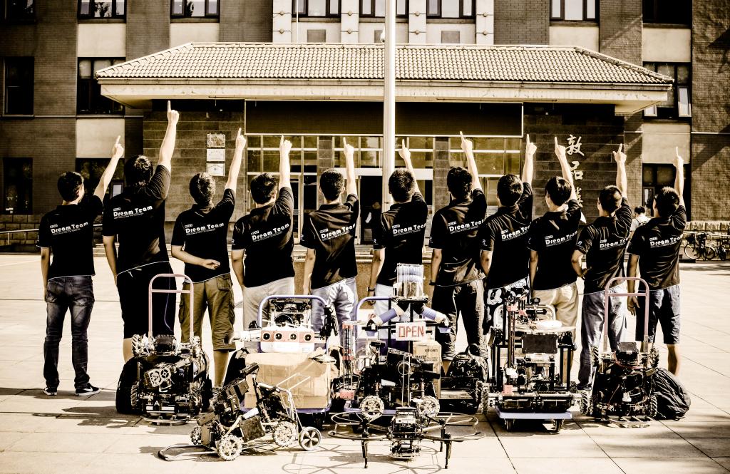 奮斗永遠在路上。在師生的不懈努力下,在2015年RoboMasters全國大學生機器人大賽上, DreamTeam戰隊就取得了全國十六強、北方賽區一等獎的好成績。勝利為這個年輕的團隊注入了無限激情,也讓這個年輕的團隊快速發展起來,自動化、電氣、交通、機械、計算機等多個學院和多個專業的同學積極加入這個團隊中來。新鮮血液的注入也為實驗室帶來新的變化,團隊分工變得更加明確,技術水平穩步上升。2016年,李鑫、郭明理、李澤文等優秀隊員團結協作,帶領團隊又一次取得了全國二等獎、北方賽區一等獎的好成績。