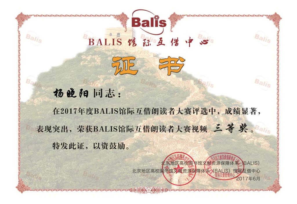 近日,由北京市圖工委和BALIS館際互借中心組織的“朗讀者”活動揭曉成績。我校圖書館組織了3組學生積極參賽,其中經管學院楊曉陽和電控學院廉嘉政同學憑借作品《那一世》脫穎而出,獲得視頻組比賽三等獎。本次活動共有87所院校提交了346個音頻作品和69個視頻作品,各類獲獎作品不到30%。