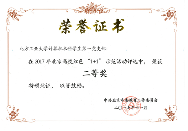 11月22日下午,2017年北京高校紅色“1+1”示范活動(dòng)展示評(píng)選會(huì)在北京化工大學(xué)科學(xué)會(huì)堂舉行。我校計(jì)算機(jī)學(xué)院計(jì)算機(jī)本科學(xué)生第一黨支部從北京各高校參加評(píng)選的1139個(gè)學(xué)生黨支部中脫穎而出,成功進(jìn)入25強(qiáng),并在總決賽中表現(xiàn)優(yōu)異榮獲北京市高校紅色“1+1”示范活動(dòng)二等獎(jiǎng)。