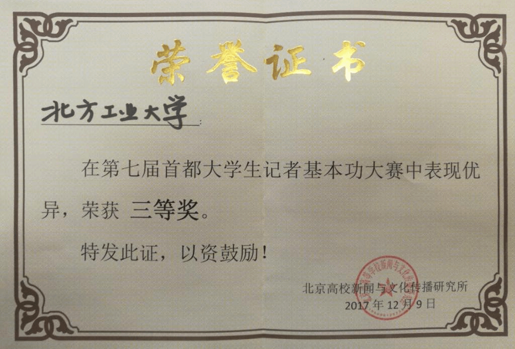12月9日,由北京高校新聞與文化傳播研究會主辦的第七屆首都高校大學生記者基本功大賽在對外經濟貿易大學舉行。由我校大學生記者團朱小月、吳猜、單婷、胡文昊4位學生記者組成的代表隊,與清華大學、中國人民大學、中國傳媒大學等30所首都高校的學生記者代表隊同臺競技。