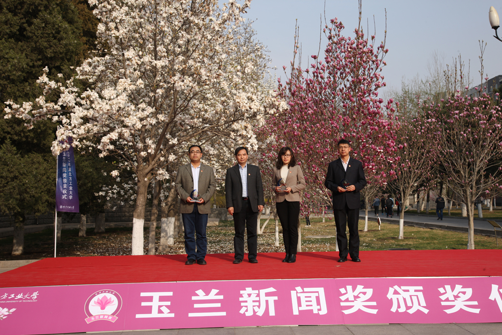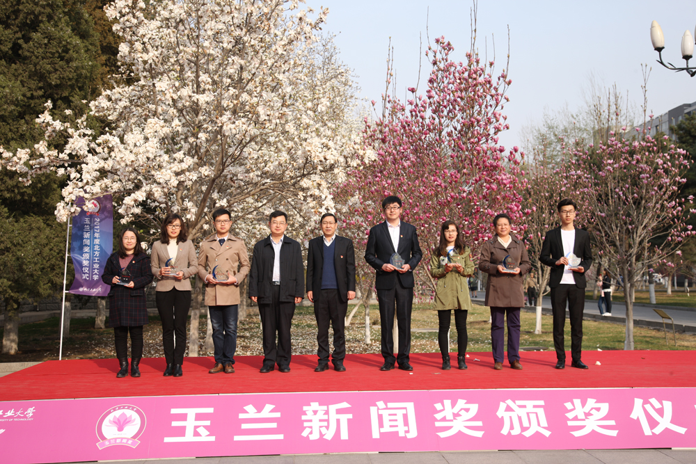 3月30日下午,北方工業大學2017年度“玉蘭”新聞獎頒獎儀式在敦品樓前隆重舉行。學校領導鄭文堂、王建穩、歐陽媛以及200余名師生共同見證了這一重要時刻。