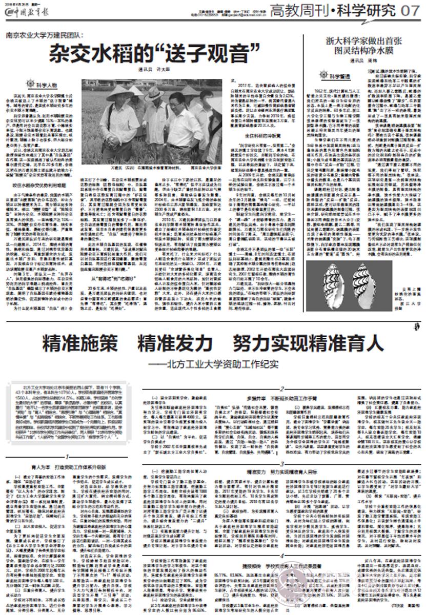 6月25日,《中國教育報》第七版“高教周刊.科學(xué)研究”以《精準(zhǔn)施策 精準(zhǔn)發(fā)力 努力實現(xiàn)精準(zhǔn)育人--北方工業(yè)大學(xué)資助工作紀(jì)實》為題報道了我校學(xué)生資助工作。