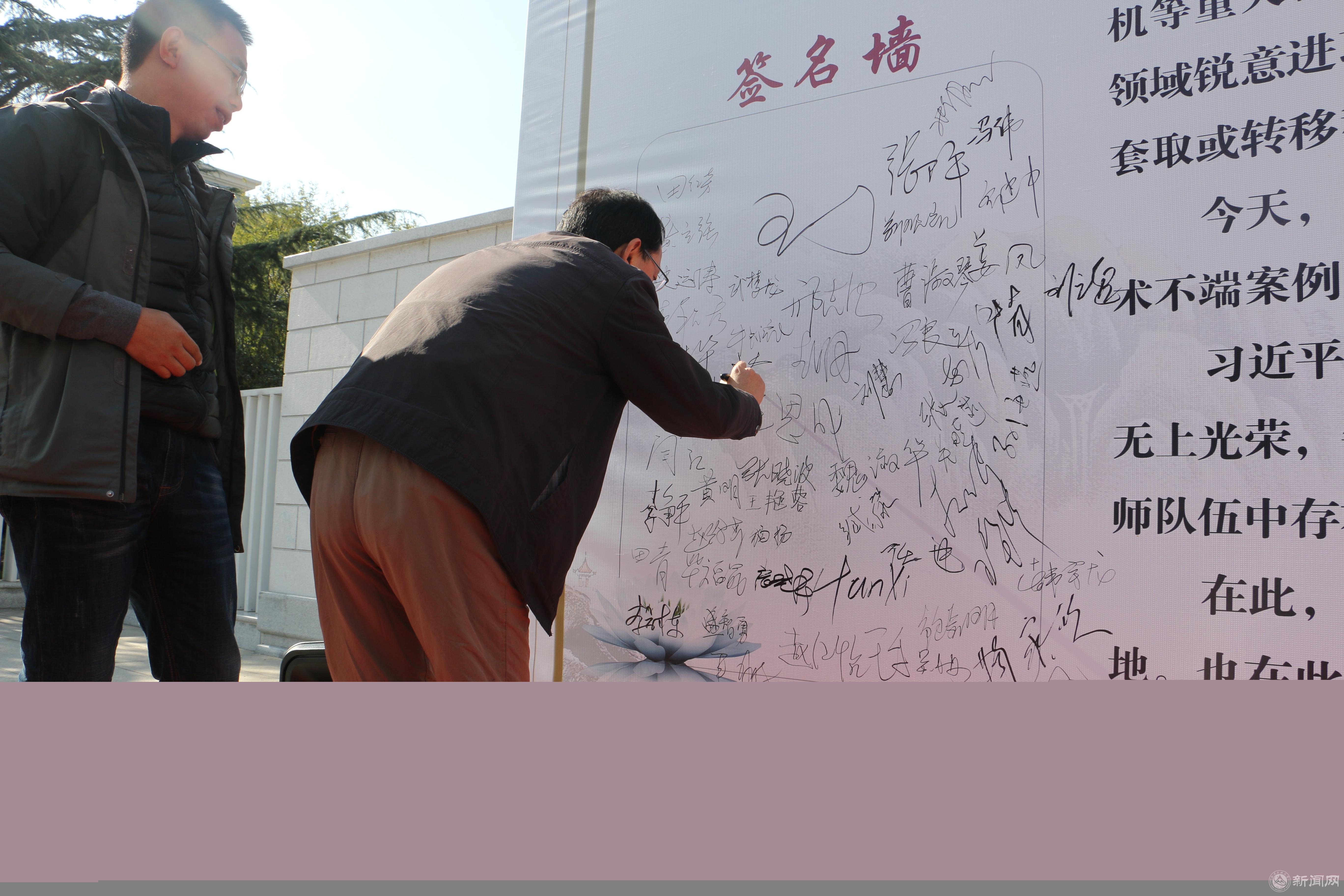 現場教師共同表態“抵制科研腐敗,專心學術,以身作則,兩袖清風,共同構建清廉、透明的科研空間”,并在簽名板上鄭重簽字。學生黨員、入黨積極分子作為講解員為大家詳細講解典型的科研腐敗、學術不端案例。