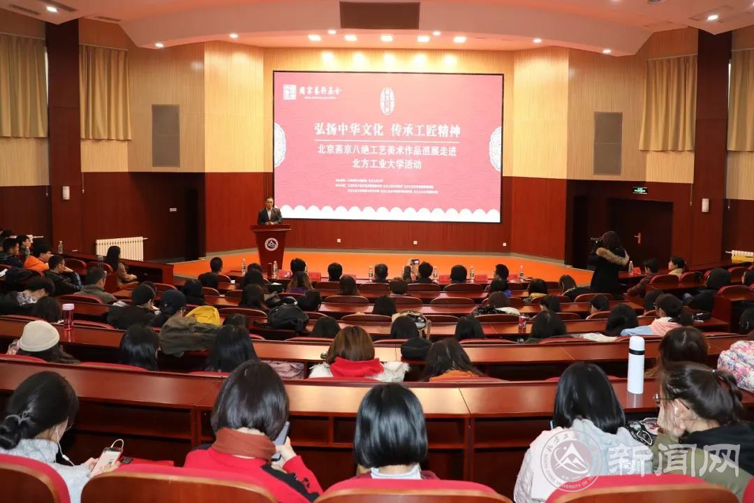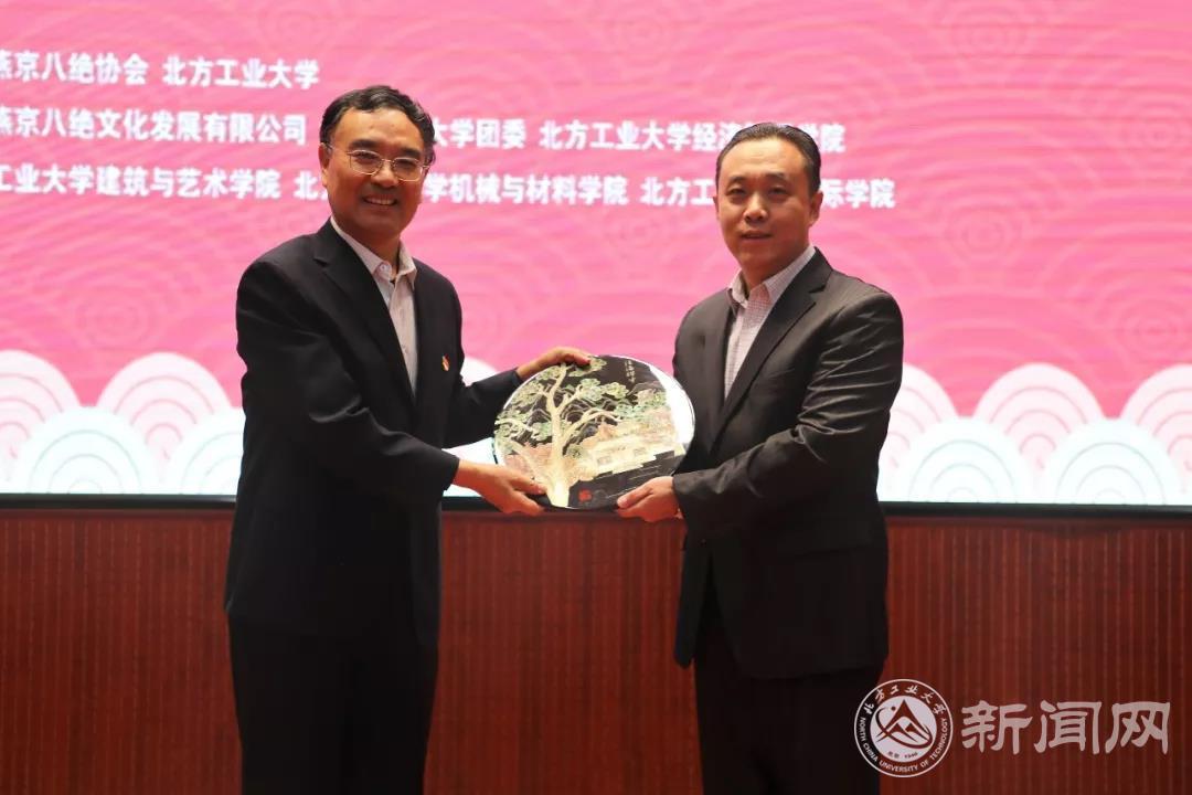 燕京八絕傳承人萬紫大女士和北京燕京八絕協會常務副會長柏群老師分別致辭。萬紫女士表示,黨的十九大以來,在黨和政府的政策指引和社會各界的積極推動下,燕京八絕事業得到了長足的發展。她希望未來所有的非遺傳承人繼續秉持著“敬業、精益、專注、創新”的工匠精神,努力創作具有傳統工藝和北京特色的燕京八絕藝術精品。柏群副會長在致辭中表示,燕京八絕從2010年結緣西山永定河文化帶,在石景山區的千年古剎承恩寺建立了燕京八絕的藝術館。多年來,燕京八絕與北方工大都是好伙伴和好鄰居,希望通過此次活動,搭建起校企合作、傳承文化、傳播文明的平臺,為石景山區的文明創城事業、為首都四個中心建設,為中華文明的薪火相傳,在各自的領域做出新的更大的貢獻。