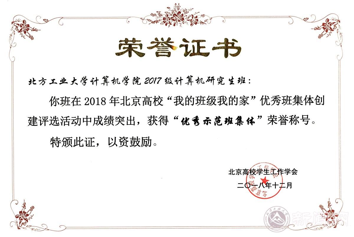 12月19日,2018年北京高校“我的班級我的家”優秀班集體創建評選會在北京工業大學舉行。我校計算機學院17級計算機研究生班獲得了北京高校“優秀示范班集體”稱號。