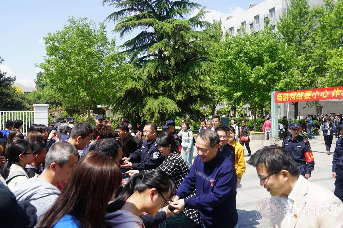 4月26日,我校與石景山區八角街道辦事處、八角派出所在毓秀廣場聯合舉辦防范電信詐騙主題宣傳活動。校黨委副書記田紅芳出席活動,學校師生300余人參加了宣傳活動。