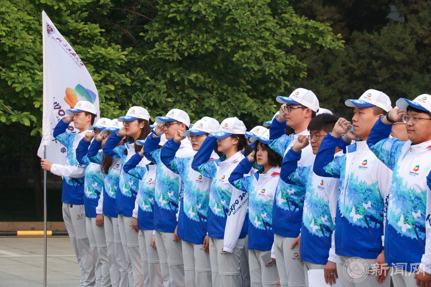 “我志愿加入北京世園會志愿者行列。我將:盡己所能,堅守崗位;服從安排,聽從調遣;協作求同,播灑熱情;奉獻真誠,嚴謹細致,為世園會提供最好的服務,展現北方工大學生風采”。在國旗下,志愿者們莊嚴宣誓,將以實際行動向祖國向學校承諾,以北方工大學生的奉獻精神、專業能力和忘我的態度服務我們的國家,展現當代中國青年的責任和擔當。
