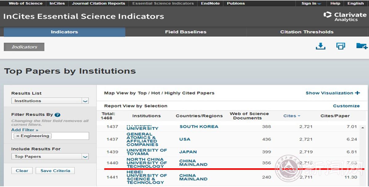 9月11日基本科學(xué)指標(biāo)數(shù)據(jù)庫(Essential Science Indicators,簡稱ESI)發(fā)布的最新數(shù)據(jù)顯示:北方工業(yè)大學(xué)工程學(xué)(Engineering)學(xué)科首次進(jìn)入ESI全球排名前1%,標(biāo)志著我校工程學(xué)學(xué)科邁入國際高水平行列。