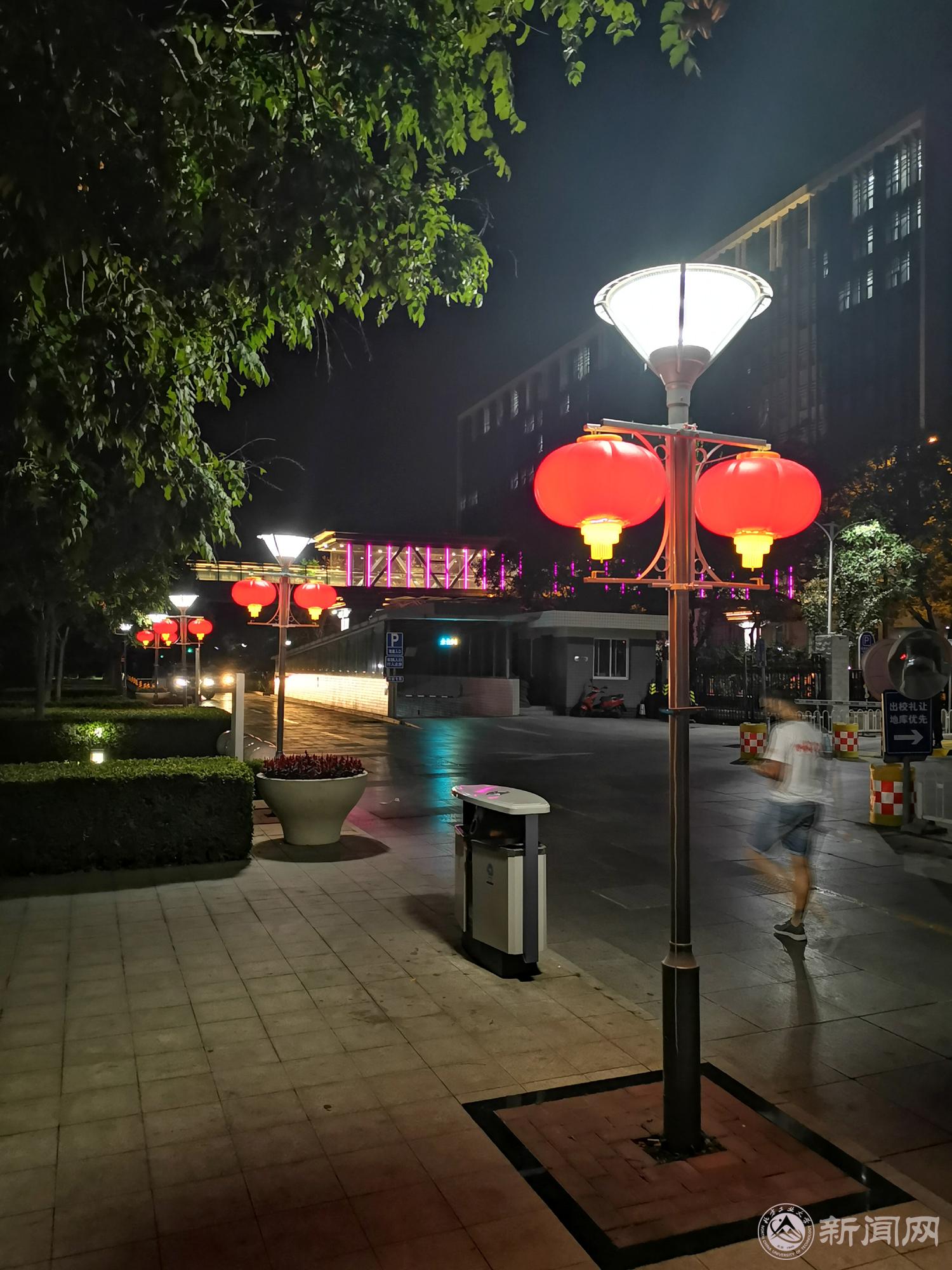 校園行道兩旁,大紅燈籠高高掛起,喜氣洋洋。