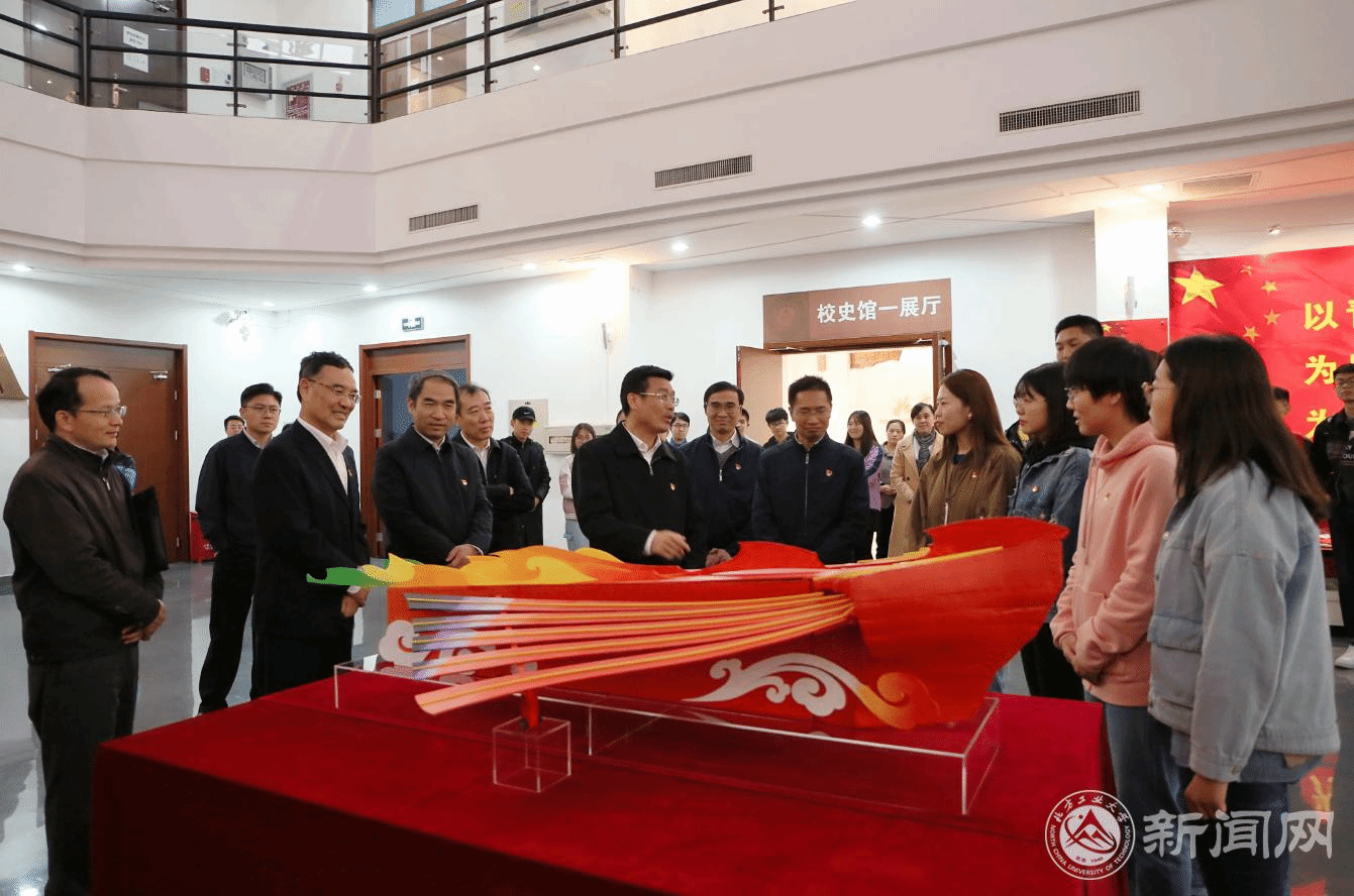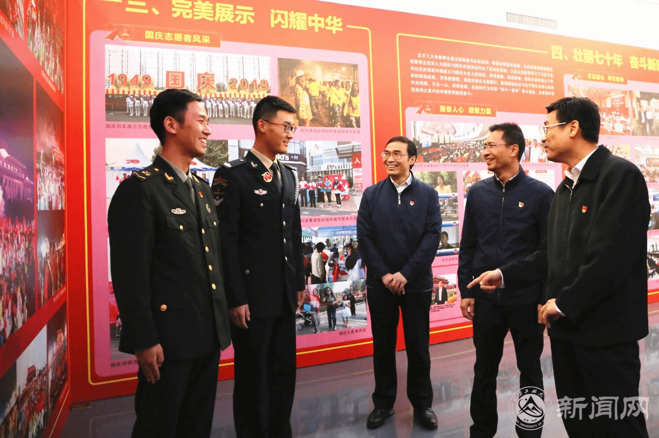 在校史館,林克慶同志一行參觀了以“不忘初心、牢記使命,我與祖國共奮進”為主題的學校慶祝新中國成立70周年主題教育活動成果展,全面了解學校踐行黨的初心和使命,為黨育人、為國育才等方面情況。他指出,自1946年創立以來,學校在黨建思政、人才培養、科學研究、改革創新等方面取得了眾多成績,看到學生們的作品創意、實驗成果以及用心用情手工制作的“中華兒女”方陣彩車模型,很受感動。特別是學校把服務保障國慶作為最生動、最實際的主題教育,積極參與70周年慶典游行、聯歡和志愿服務,充分展示出北方工大師生奮發有為、朝氣蓬勃的精神風貌。