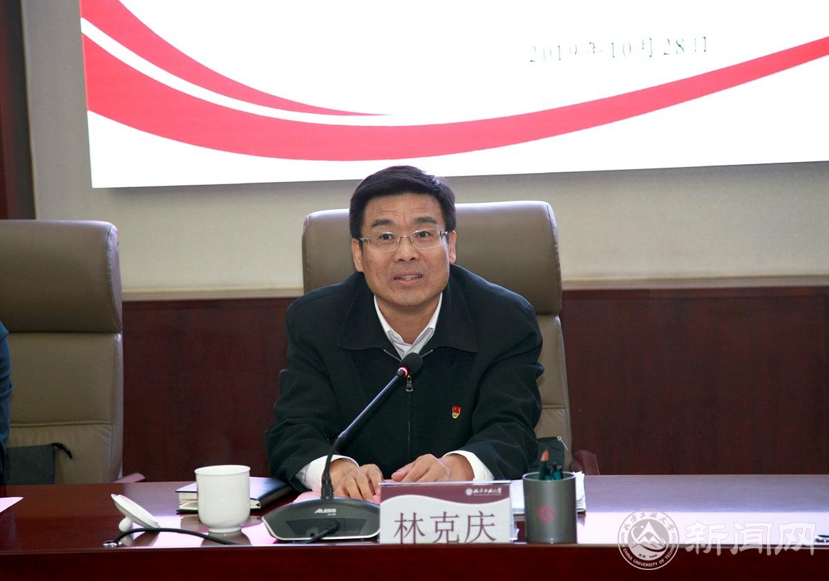 10月28日下午,正值黨的十九屆四中全會隆重召開,全市上下貫徹落實習近平總書記國慶系列重要講話精神,深入總結服務保障國慶活動,把全校師生迸發出的愛黨愛國熱情、形成的寶貴精神財富,轉化為更好踐行初心使命之際,北京市委常委、常務副市長林克慶到校調研指導主題教育工作。市政府副秘書長王文杰、市委教育工委副書記李軍鋒、市政府研究室副主任李春榮、市委主題教育第十巡回指導組副組長劉開陽等陪同調研。學校黨委書記鄭文堂參加調研。
