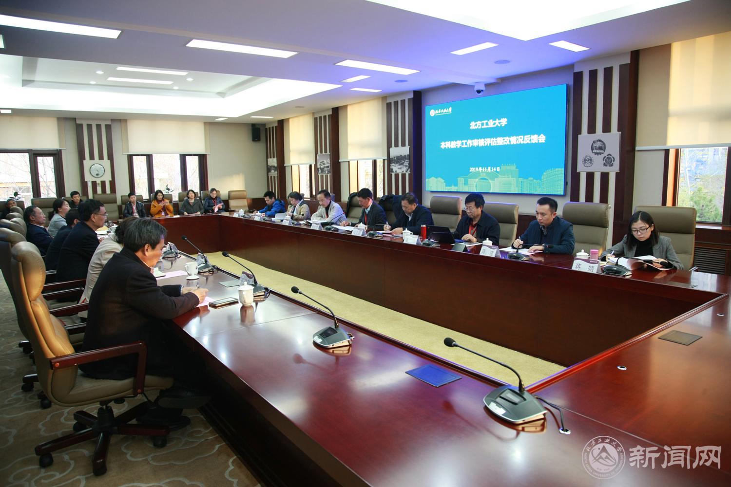 11月14日下午,學校本科教學工作審核評估整改情況反饋會在敦品樓302召開。以北京科技大學副校長薛慶國為組長,北京化工大學數理學院院長姜廣峰、北京工業大學教務處原副處長周競學為成員的專家組,北京市政府教育督導室副主任馮義國,市教委督學處處長龍梅、北京科技大學教務處副處長陳建、市教委評估與監測處吳桂群、市教委督學處蔣婧到會指導。全體校領導出席了反饋會。反饋會由薛慶國組長主持。