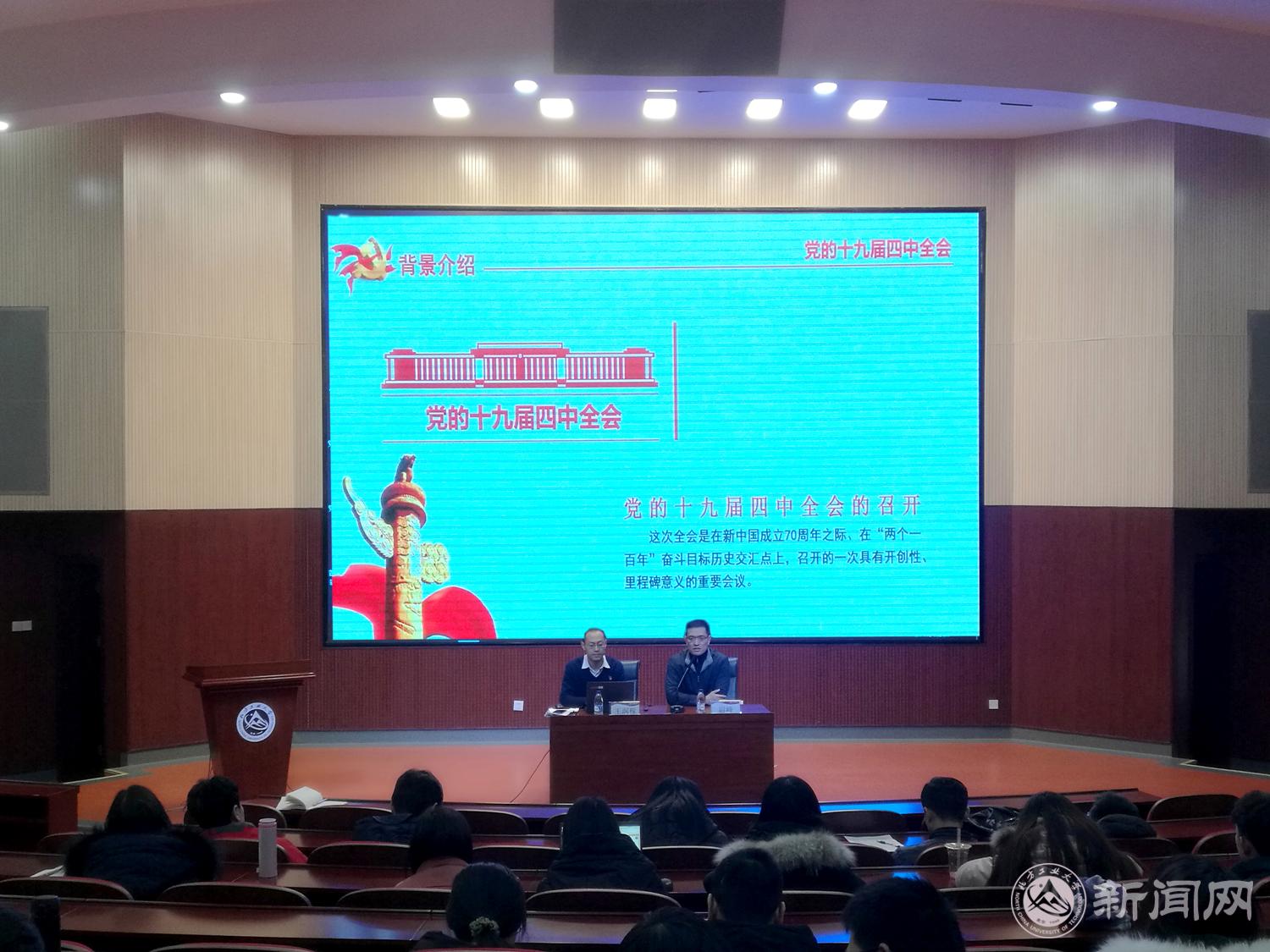 12月26日下午,學校在文化會堂組織開展學習貫徹黨的十九屆四中全會精神第四次宣講,馬克思主義學院王潤稼老師做輔導報告。此次宣講會由教師工作部、宣傳部聯(lián)合舉辦,120余名青年博士參加了學習。宣講會由宣傳部副部長尉峰主持。