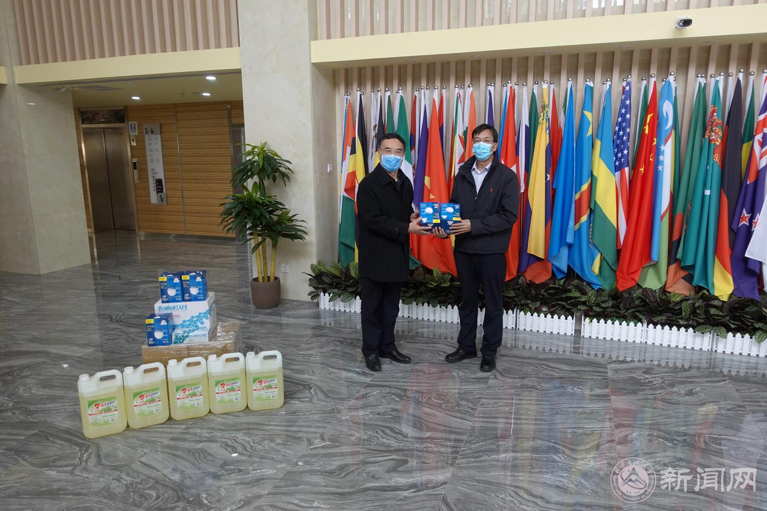 柯永果副區長向學校贈送了口罩、一次性手套、消毒水等防疫物資。他表示,區委區政府將與學校密切協同,通過科學有效的防控措施,全面落實“四方責任”,建立全社會共同防控體系,全力以赴做好疫情防控各項工作。