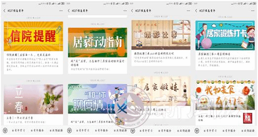 活動通過“NCUT信息青年”微信平臺統一發布,進行網絡作品收集和評比。通過近一個月的實踐,效果初顯。在這場戰疫中,我們每一個人都是重中之重,戰役效果初顯,思想時刻不懈,堅持不離家不返校,勝利已不遙遠。戰‘疫’在前,與息相伴,共同戰“疫”,信息學院在行動