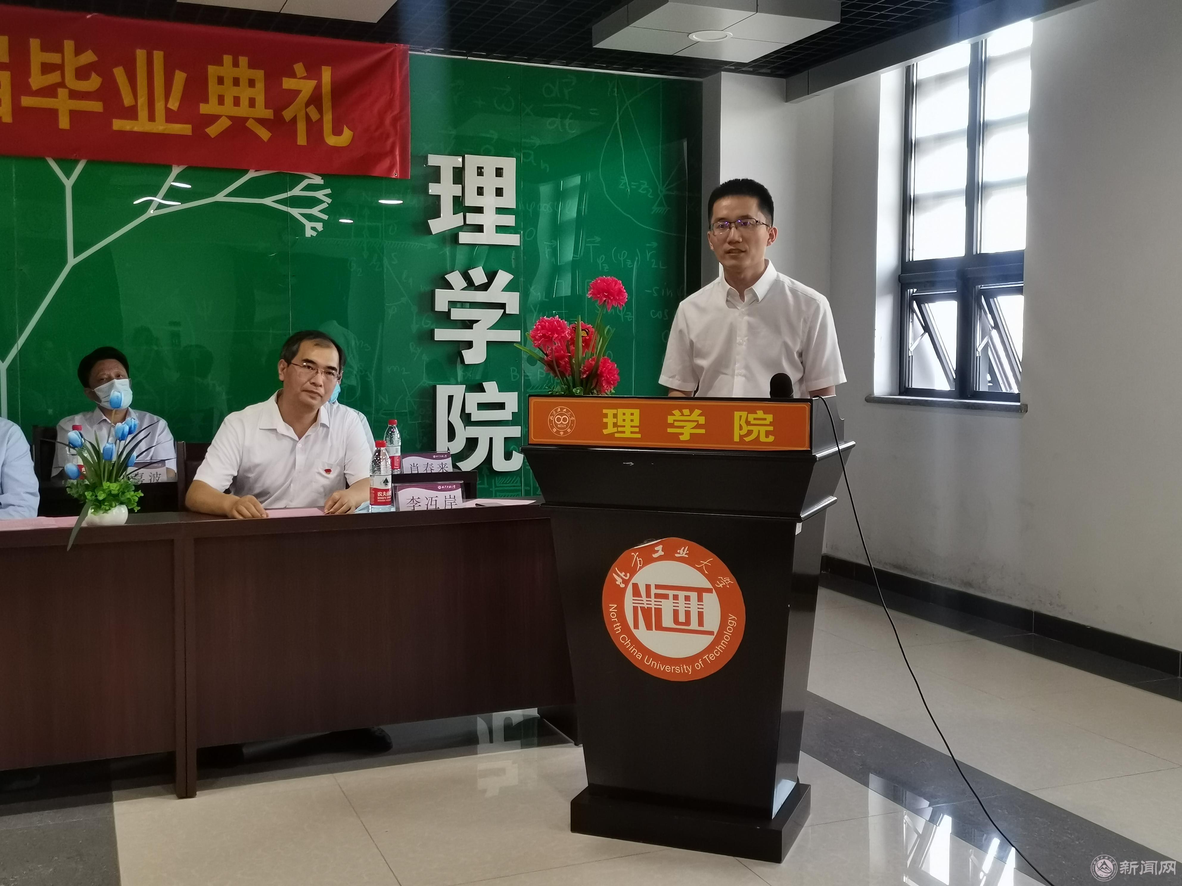 理學院黨委書記龔維華宣讀了理學院相關表彰決定并致辭。他對畢業的同學們提出了三點期望:一要抬頭仰望星空、北斗導航、不忘初心、擔當使命,把個人理想與祖國命運緊密結合。二要低頭腳踏實地、敢于斗爭、敢于奮斗,戰略上蔑視敵人,戰術上重視敵人。三要學習強國、和光同塵、融入社會。