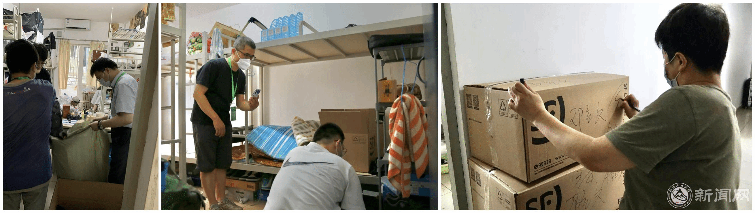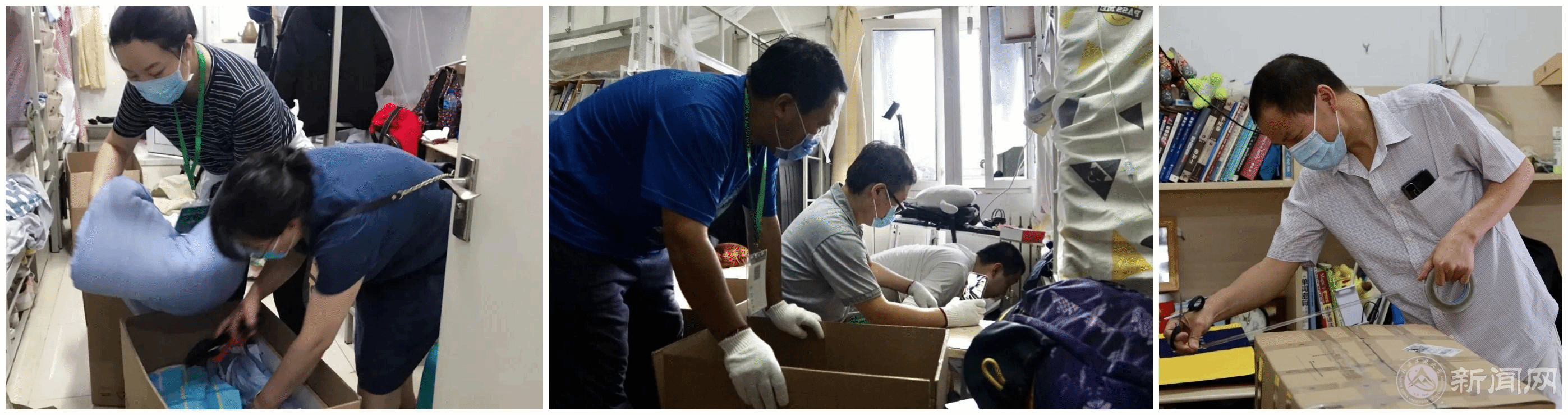 在這次畢業生行李打包寄送的“大會戰”中,學校充分尊重學生的意愿、保護學生的隱私,輔導員、班導師事先進行充分的調研和溝通,并通過現場視頻對話的方式與學生逐一確認行李物品。平時讓學生們仰慕敬佩的教授們、在講臺上侃侃而談的青年教師們、在校園里默默奉獻的干部們,都擼起了袖子,在宿舍里整理物品、裝箱打包,干得是熱火朝天、汗流浹背。老師們都表示,這一屆畢業生太不容易了,我們一定要盡最大努力讓同學們少一些遺憾,多一分溫暖。把對學生的愛和關懷一起裝進行囊,通過一個個快遞件送到學生手上。