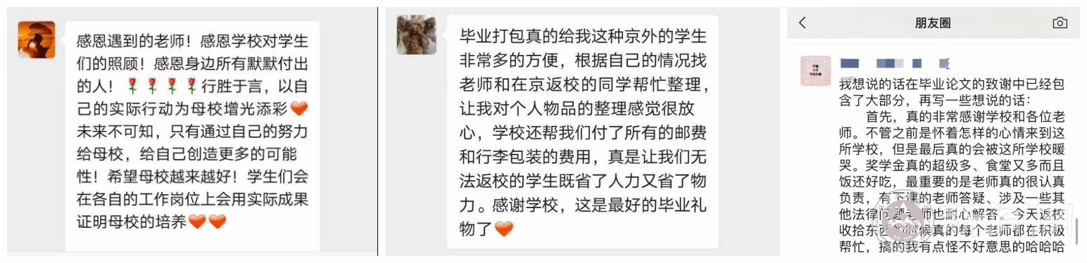 遠在全國各地的畢業生們,通過視頻連線目睹了老師們的辛勤工作,都表示非常感動。“老師您辛苦了”、“謝謝各位老師”……溫暖的話語跨越云端,也回蕩在每位教師的心里。