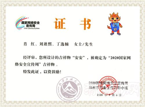 日前,我校建藝學院教授肖紅率藝設學生劉迪熙和設計學研究生丁逸楠合作設計的吉祥物“安安”,在2020年國家網絡安全宣傳周組委會的評審中獲得確認并將啟用。