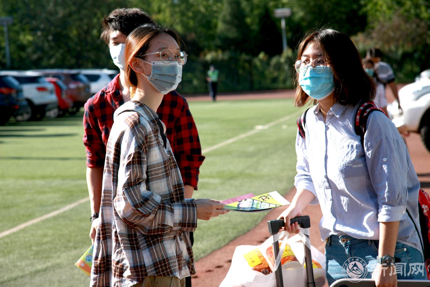 常態化疫情防控的背景下,學校將保障師生家長健康安全放在首位,對迎接新生入學工作進行了周密細致的安排。進出校門進行嚴格的體溫檢測,在人員聚集區域要求學生都要佩戴口罩。為了避免人員交叉,新生辦理入學手續改變了以往在體育館集中辦理的方式,各個學院分散開展一站式辦理。