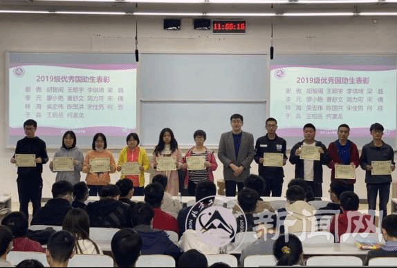 學(xué)院黨委副書記趙帥為2019-2020年優(yōu)秀國助生代表頒發(fā)獎狀。