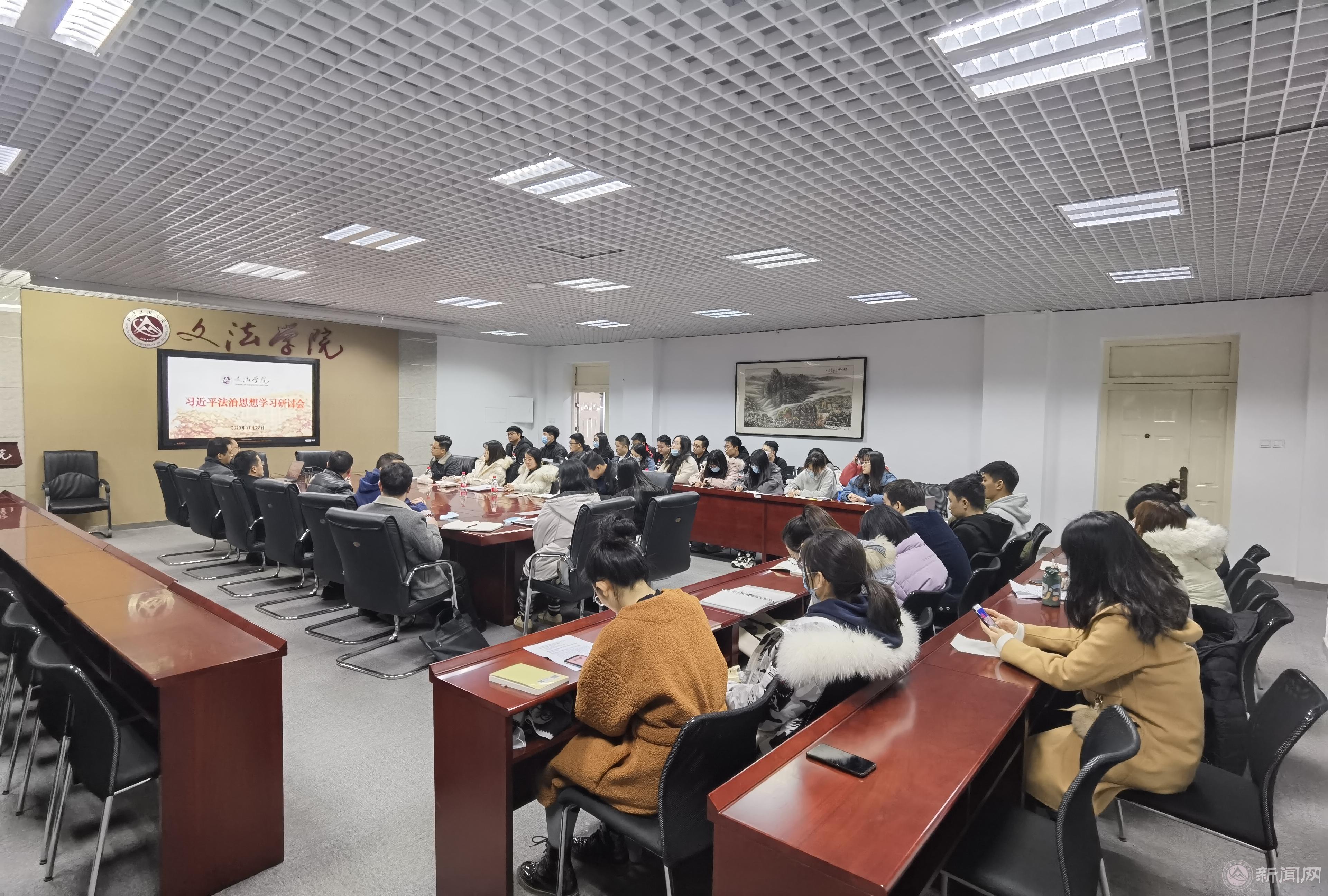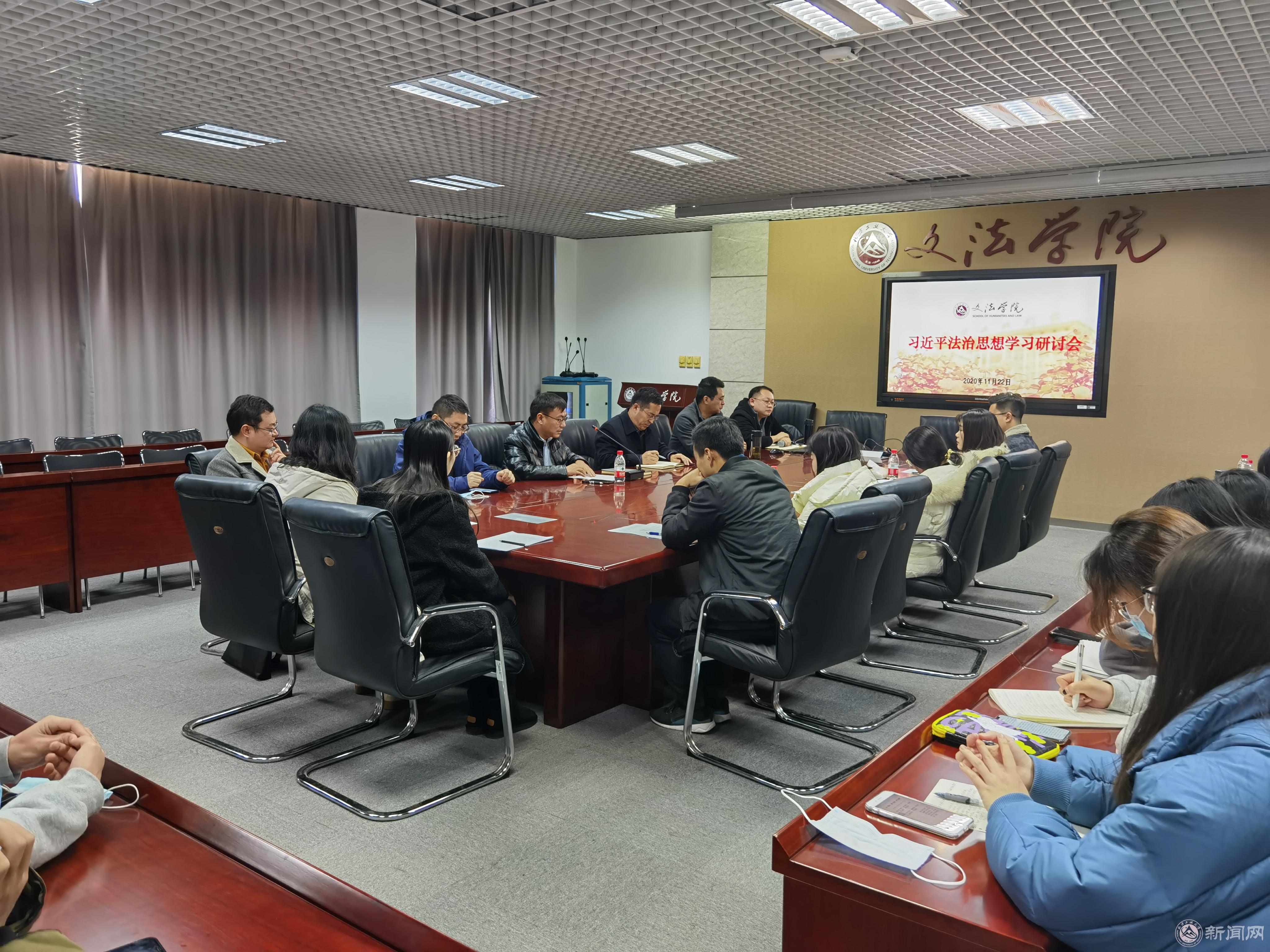11月22日下午,我校文法學院師生在瀚學樓710召開習近平法治思想學習研討會,學院副院長袁鳳識、副書記劉祥墜及部分師生代表共40余人參加了學習研討。