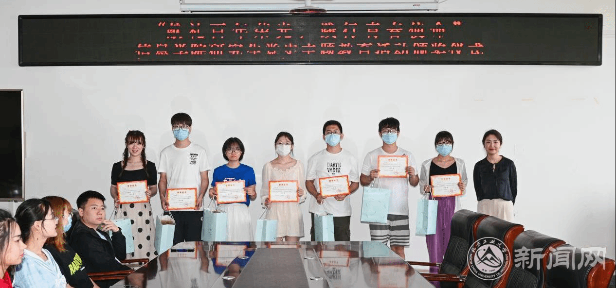 輔導員靳現凱老師為獲得“優秀作品獎”的同學頒發獎品和證書