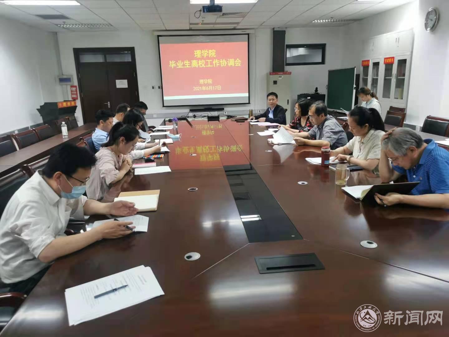 6月17日下午,理學院在博遠樓805召開2021屆畢業生離校工作會。學院班子成員、各系主任、責任教授、畢業班導師、輔導員、辦公室成員參加會議。會議由黨委副書記李冱岸主持。