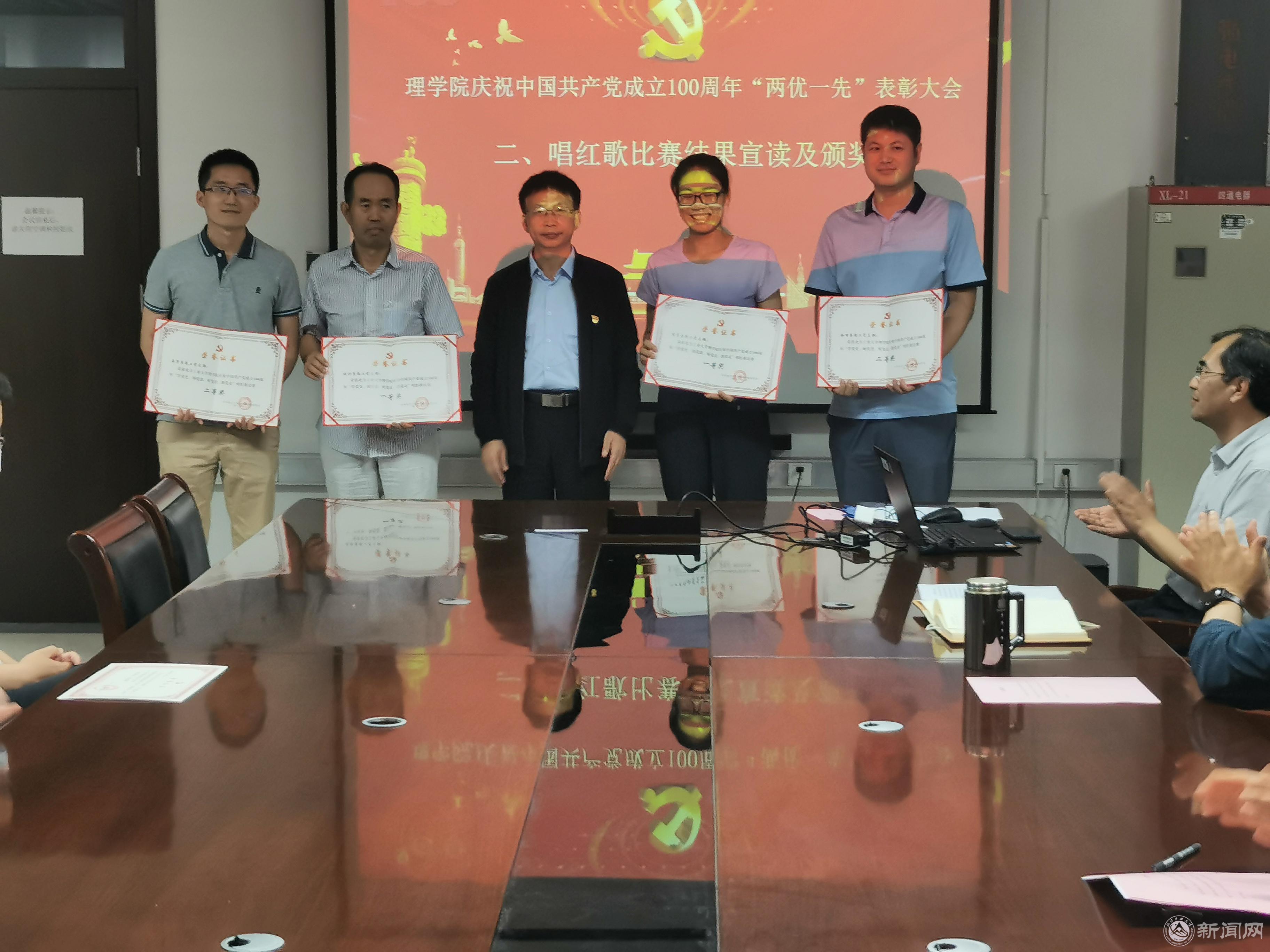 理學院黨委書記龔維華宣讀了理學院“兩優一先”表彰決定,院長張建國為理學院先進黨支部、理學院優秀共產黨員、理學院優秀黨務工作者代表頒發了獲獎證書。
