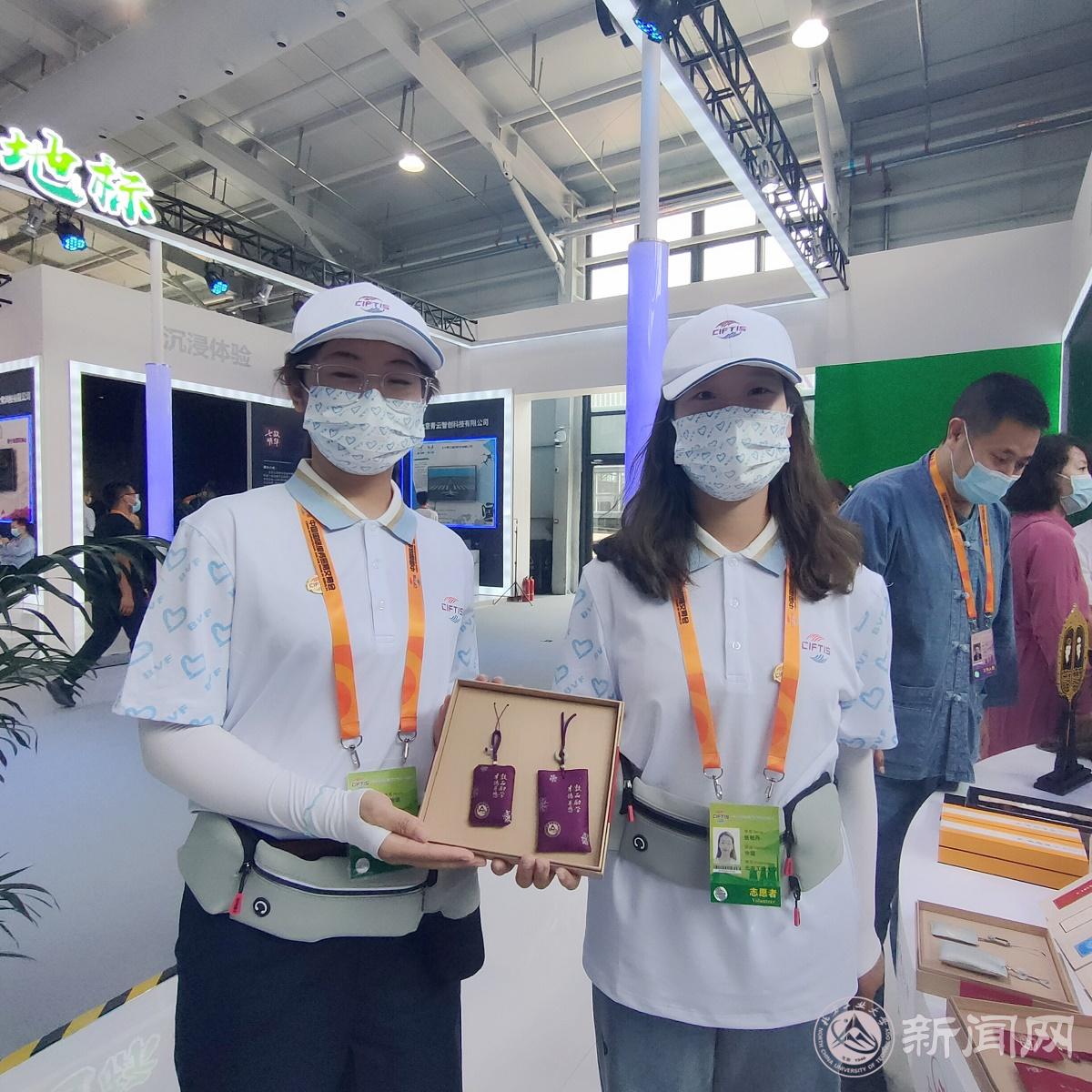 中國國際服務貿易交易會于9月2日在首鋼園區隆重開幕,由我校經濟管理學院學生參與設計和制作的“凌霄之志.毓秀情深”主題香囊亮相此次服貿會。