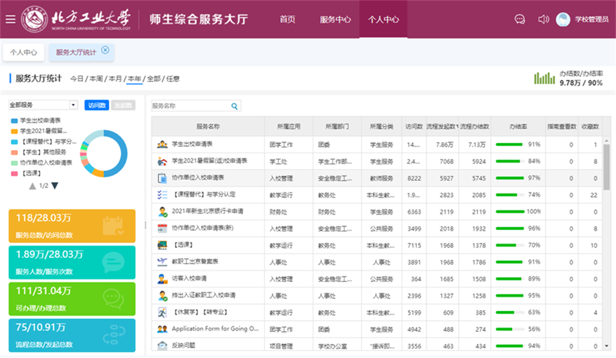 網(wǎng)信中心以方便師生為宗旨,統(tǒng)籌全校各業(yè)務(wù)部門需求,梳理和優(yōu)化學(xué)校主要業(yè)務(wù)流程,融合業(yè)務(wù)與數(shù)據(jù),推進(jìn)數(shù)字資源服務(wù)云平臺的建設(shè),部署優(yōu)化了校園WebVPN平臺和統(tǒng)一身份認(rèn)證平臺(圖1),開通了“一鍵建群”方便師生線上溝通,部署了“服務(wù)大廳”、“OA辦公”、“網(wǎng)絡(luò)教學(xué)平臺”、“研究生成果認(rèn)證”、“協(xié)作單位入校申請表”、“【課程替代】與學(xué)分認(rèn)定”等業(yè)務(wù)線上辦理流程(圖2);積極推進(jìn)網(wǎng)上服務(wù)大廳(圖3)和企業(yè)微信(圖4)等設(shè)施平臺建設(shè),應(yīng)對 “停課不停學(xué)、停課不停教”,在企業(yè)微信中建設(shè)上線了“學(xué)生出校申請”、“學(xué)生2021暑假留(返)校申請表”、“接訴即辦”等十多個高頻、多面向的辦事服務(wù)流程,進(jìn)一步簡化審批流程,實現(xiàn)在線申請(預(yù)約)、審批、查看等功能,真正落實了“讓數(shù)據(jù)多跑路、師生少跑腿”的目標(biāo)。