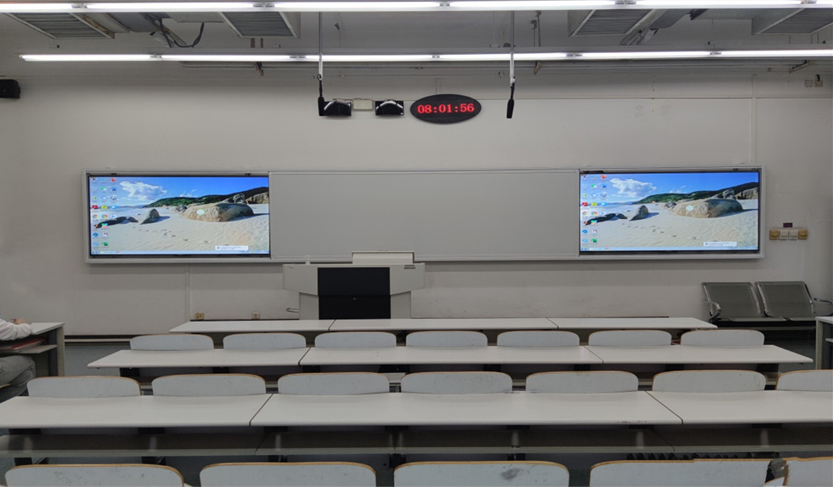 疫情發(fā)生以來,教師授課從現(xiàn)場教學(xué)向線上線下同步教學(xué)轉(zhuǎn)換。網(wǎng)信中心針對教學(xué)新模式和師生新需求,在智慧教室、公共教室及博遠(yuǎn)樓機房的教學(xué)信息技術(shù)方面勇于創(chuàng)新(圖5),利用寒暑假,解決了大規(guī)模高并發(fā)直播錄播授課的各類技術(shù)難題,完成教室課程資源錄播建設(shè)項目,實現(xiàn)了公共教室、機房和會議室同步直播錄播,滿足了線上線下同步教與學(xué)的需求,保證了所有同學(xué)都能獲得優(yōu)質(zhì)的聽課質(zhì)量,讓每一個學(xué)生不因疫情而耽誤學(xué)習(xí),為兄弟院校返校復(fù)學(xué)提供了經(jīng)驗。此外,今年暑期完成浩學(xué)樓東全部12間階梯大教室(圖6)和勵學(xué)樓220、211,瀚學(xué)樓103小教室樣板間(圖7)的多媒體設(shè)備改造工作,根據(jù)各教室的不同大小和布局,大教室采用多屏顯示、藍(lán)牙麥克擴音等方式,提升教學(xué)技術(shù)手段和環(huán)境條件,力求課件呈現(xiàn)無死角、聲音傳輸無盲區(qū);試點多功能白板、無感知考勤、無線投屏等便捷教學(xué)手段;試點小教室不同形式樣板間建設(shè),擬通過征求師生本學(xué)期的使用反饋意見,為明年全部小教室多媒體改造提供參考經(jīng)驗,腳踏實地推動教育教學(xué)與信息化技術(shù)深度融合。