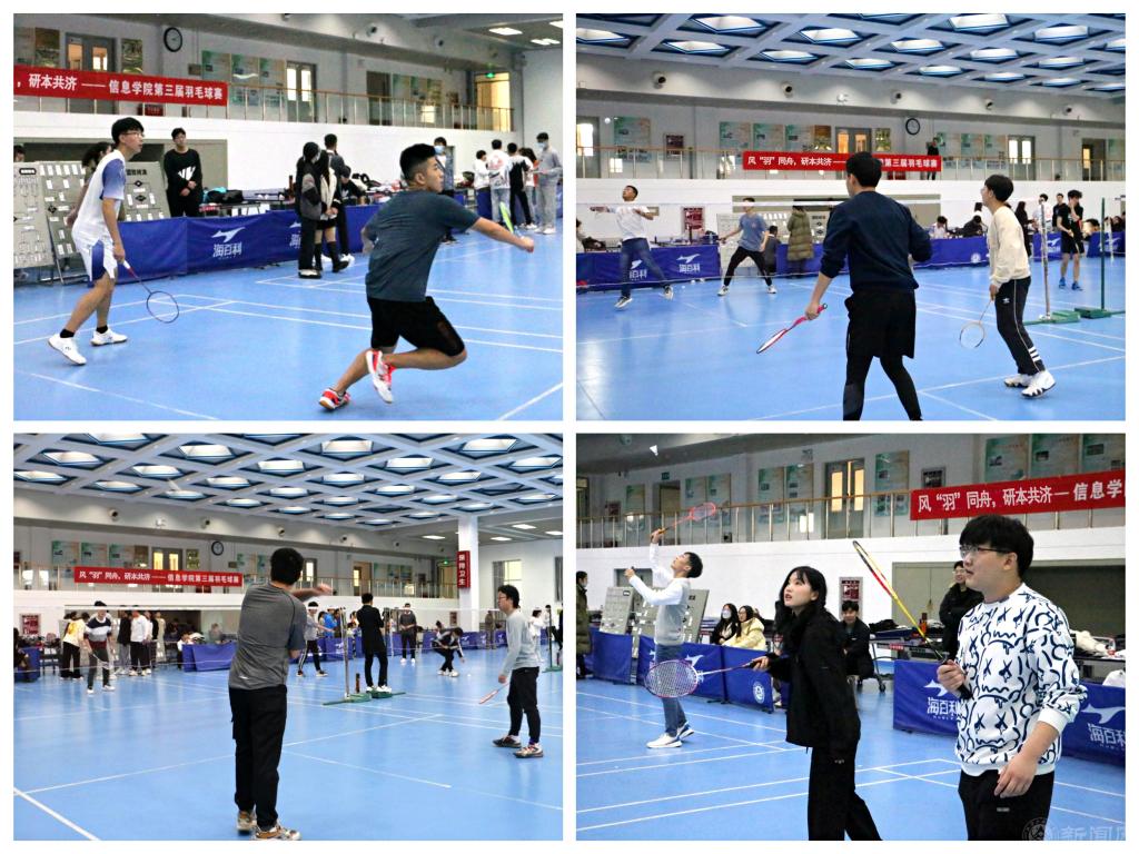 為拓寬研本互動(dòng)渠道,促進(jìn)本碩共同成長,鼓勵(lì)師生積極參與體育鍛煉,信息學(xué)院于近日在體育館舉辦“風(fēng)‘羽’同舟,研本共濟(jì)”主題羽毛球賽。此次比賽包括男雙、女雙、混雙以及師生賽四個(gè)項(xiàng)目,本科和研究生分別有30支隊(duì)伍參賽,師生組10支隊(duì)伍參賽。