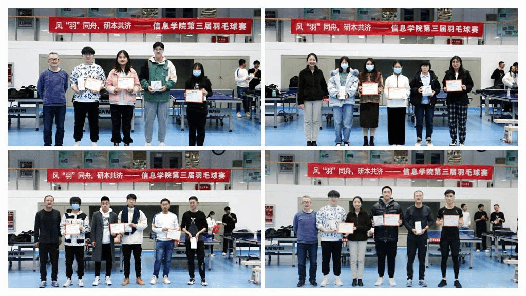 信息學(xué)院第三屆羽毛球比賽圓滿落下帷幕,此次比賽以“朋輩教育”為路徑、以“攜手共進(jìn)”為目標(biāo),為研究生和本科生提供了良好的互動(dòng)交流平臺(tái),學(xué)院將繼續(xù)在各領(lǐng)域、各維度加強(qiáng)研本聯(lián)動(dòng),努力構(gòu)建研本交流互通、優(yōu)勢互補(bǔ)的創(chuàng)新型人才培養(yǎng)模式。