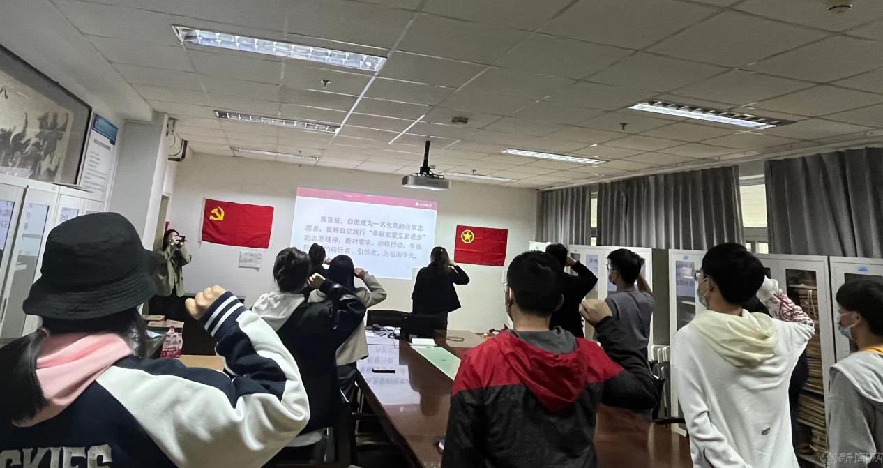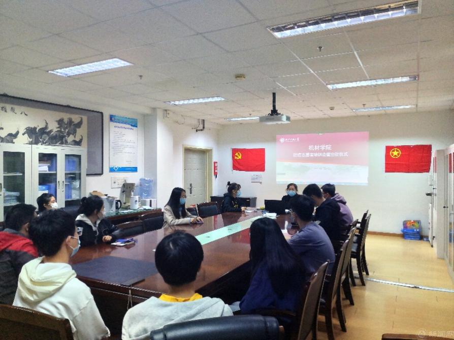 志愿者代表趙夢彤宣讀《致機材學(xué)院全體疫情防控志愿者的倡議書》并與線上線下各位志愿者共同宣誓,一聲聲鏗鏘有力的誓言凝聚著全院疫情防控志愿者青年突擊隊同學(xué)的決心和必勝信念。
