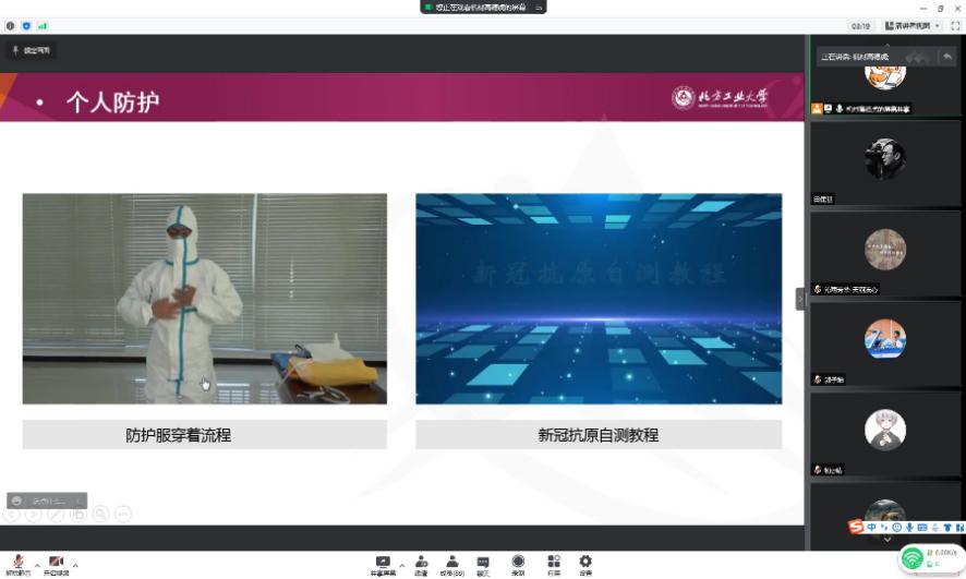 學(xué)院團委書記石卉首先對《機材學(xué)院疫情封控的應(yīng)急處置預(yù)案》進行了詳細解讀。著重對前期準(zhǔn)備工作進行了說明,同時結(jié)合具體事例介紹突發(fā)疫情后,全員核檢、物資供配、生活服務(wù)、教學(xué)安排等操作標(biāo)準(zhǔn)與注意事項,并通過視頻向志愿者展示了穿、脫防護服、醫(yī)療廢物處理規(guī)范、新冠抗原自測方法等,確保志愿者們協(xié)助參與疫情防控工作的同時做好自我防護,保障自身安全,確保疫情防控工作的有效運行。