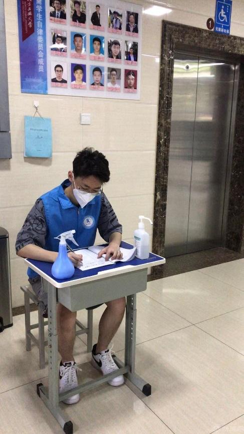 筑牢防疫線,做校園“安全衛(wèi)士”。疫情就是命令,防控就是責(zé)任。在學(xué)院黨委的領(lǐng)導(dǎo)下,信息學(xué)院黨委副書記帶領(lǐng)輔導(dǎo)員楊和家、史崟妮、吳志慶、孫滔、張雨等入駐學(xué)生公寓,與同學(xué)們一起戰(zhàn)“疫”。他們與學(xué)生同吃同住,發(fā)起“敲門行動”,每天走訪學(xué)生宿舍,了解關(guān)注學(xué)生思想狀況,耐心宣講疫情防控政策,想方設(shè)法解決學(xué)生的困難。畢業(yè)班輔導(dǎo)員楊和家、張雨深入宿舍開展畢業(yè)生一對一談心談話,緩解畢業(yè)就業(yè)壓力,指導(dǎo)幫助畢業(yè)班同學(xué)完成畢業(yè)設(shè)計、順利就業(yè)。作為黨員先鋒,他們還積極投入到物資保障、核酸檢測等服務(wù)工作中,在炎熱夏日常常濕透衣襟。每天走路2萬步起、工作時間長達(dá)十四五個小時,是他們的日常寫照。