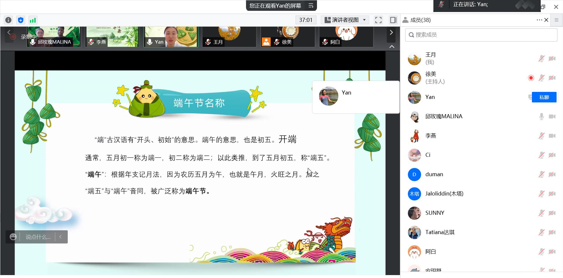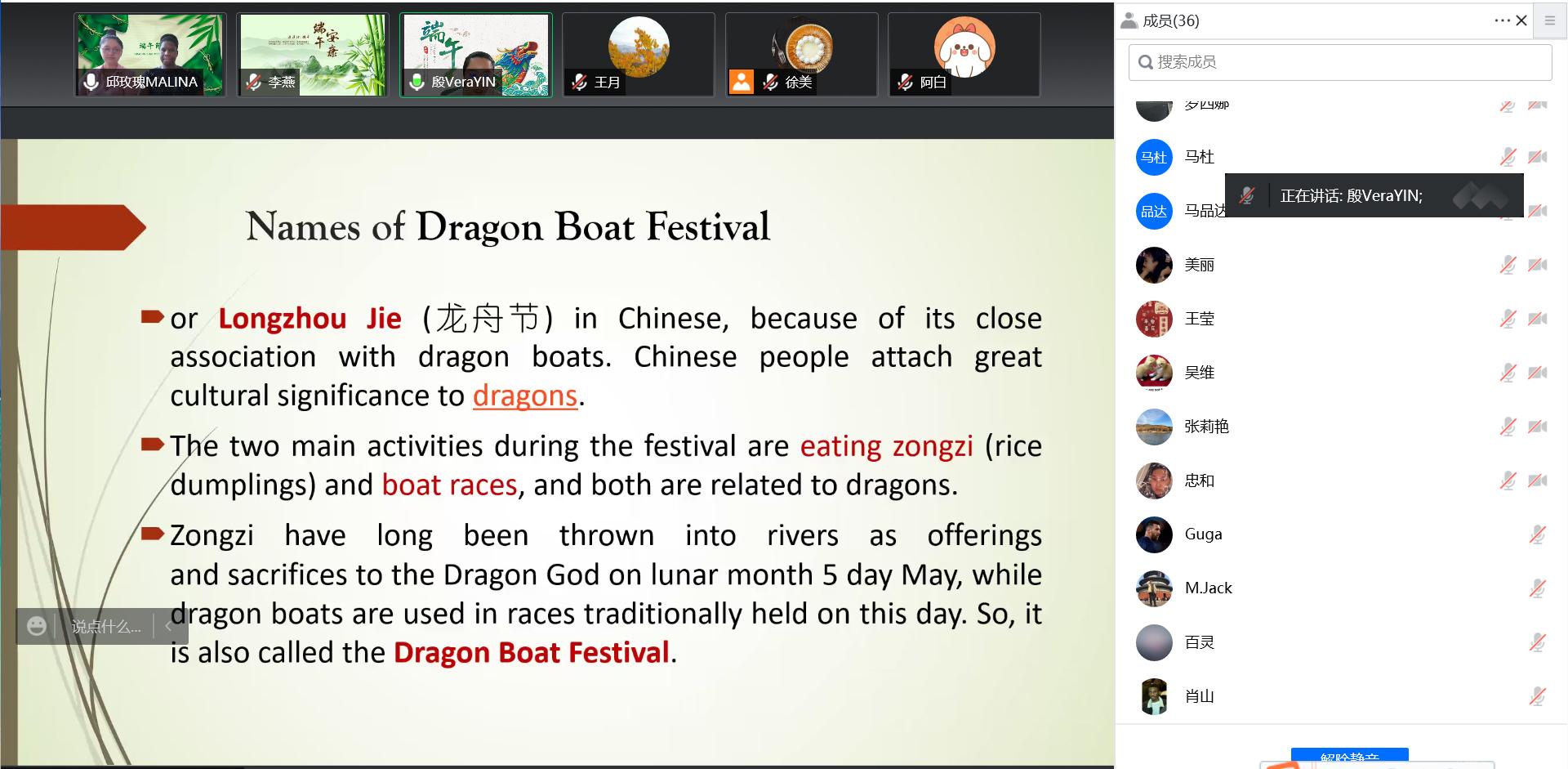 6月3日下午,端午節來臨之際,國際處國際學院舉辦了主題為“中外話端午,暖暖粽意情”的端午節線上文化活動,中外師生歡聚云端,共同度過了一個愉快的傳統佳節。