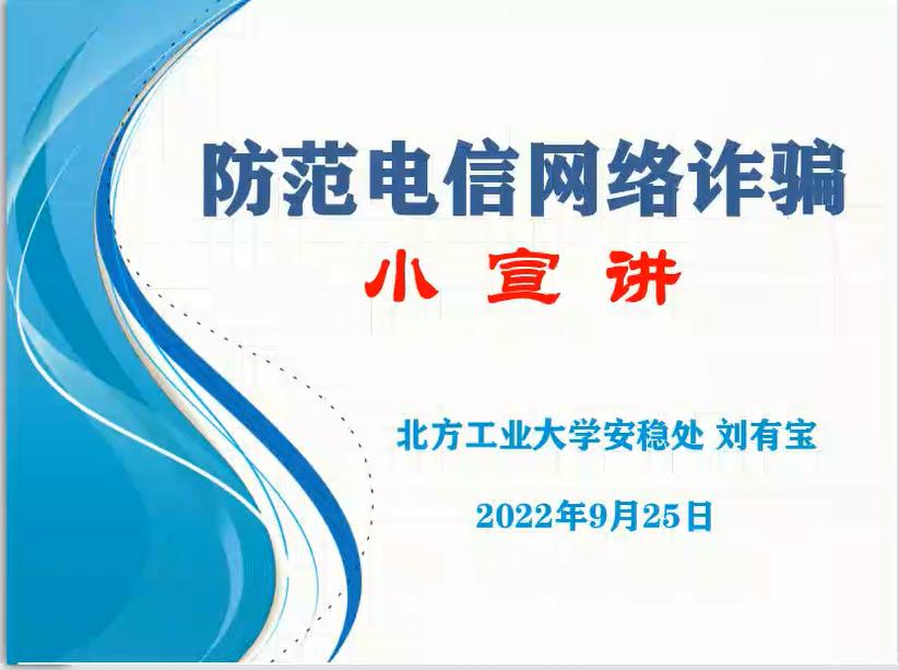 安穩處劉有寶老師進行了防范電信網絡詐騙培訓。劉有寶老師從常見的八類詐騙案件種類入手,并以我校遭遇電信詐騙的學生的情況,展示了此類案件對學生的巨大影響。劉老師在講座中介紹了“不聽信、不透漏、不轉賬”是破解常見詐騙手段的法寶,并總結了防止詐騙的11點提示,幫助同學們在遇到相關情況能夠快速辨別,避免財產損失。