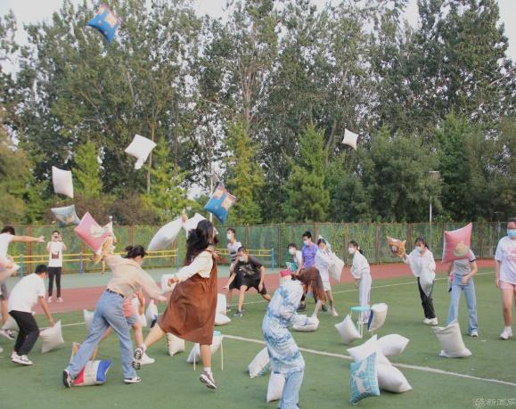 有“信”相遇,“新”心相息,師生趣味拓展團建共度佳節。假期期間,學院團委在學校小操場舉辦中秋趣味團建活動,精心設計了“挑戰指壓板”、“快樂飛盤”、“牽手呼啦圈”、“枕頭大作戰”、“共畫同心圓”等環節,還準備了充滿驚喜的盲盒,師生共樂過佳節。廣大師生積極參與其中,跳指壓板、接飛盤、轉呼啦圈、扔枕頭、開盲盒……現場氣氛緊張熱烈又趣味十足,展現了一幅節日溫馨祥和、團結一心、積極奮進的良好風貌。