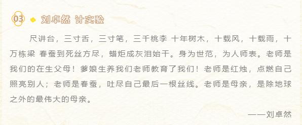 語短情長,師恩難忘,節日祝福獻給最親愛的老師。九月的丹桂芳香四溢,是因為有了園丁的悉心栽培;桂下的學子茁壯成長,是因為有了老師的用心塑造。飲水思源,感恩長存,鮮花表意,行動傳情。信息學院學子通過撰寫祝福語、手繪賀卡、錄制短視頻等形式對老師感恩之情,用最真誠的方式,將節日的祝福獻給最親愛的老師。他們也將銘記老師的教誨,在學習生活中奮勇拼搏,銳意開拓,用優異的表現來回報老師們的辛勤付出!
