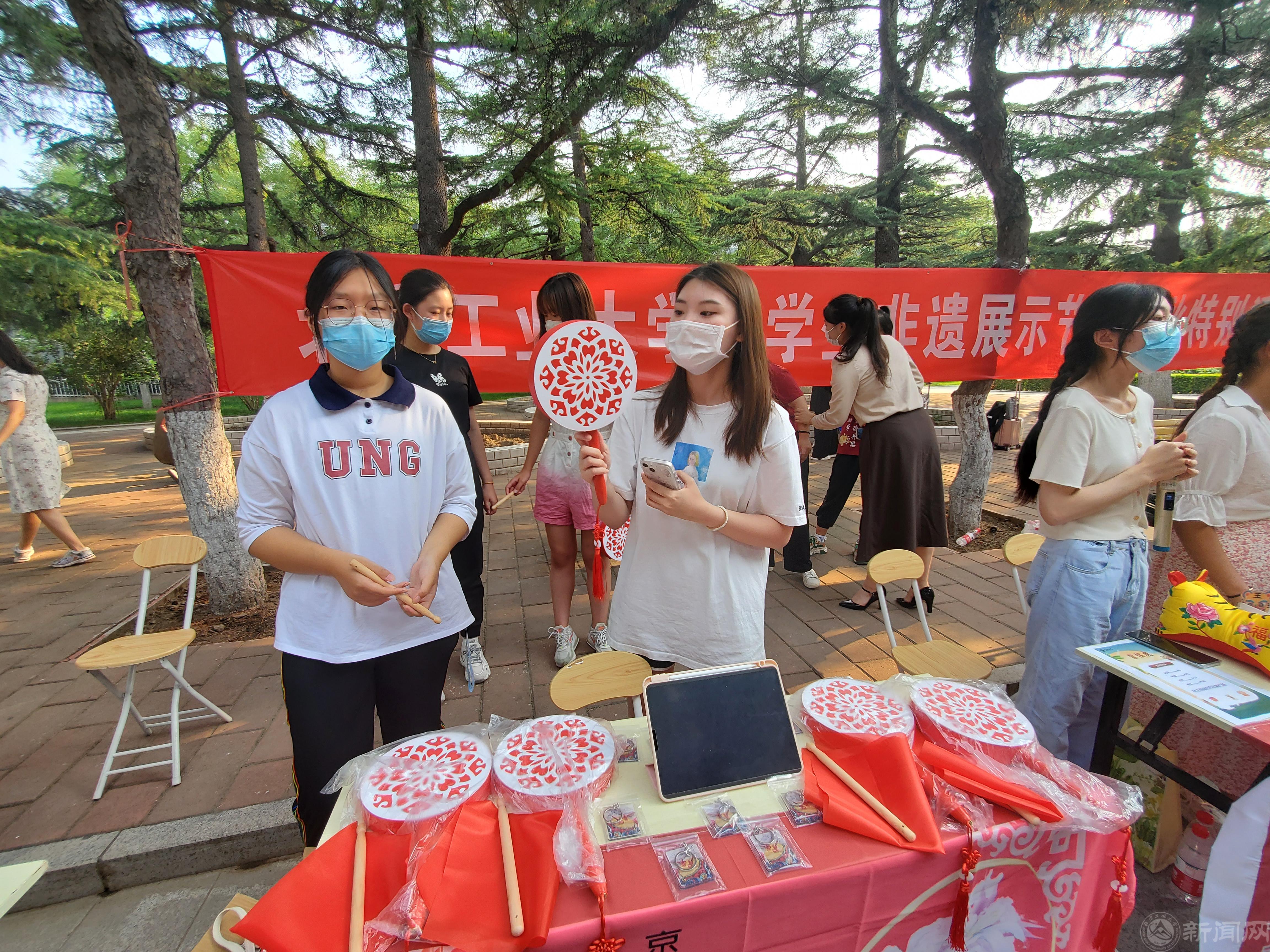 隨后,“大學生非遺展示節”揭幕,來自五湖四海不同民族的同學們分別介紹家鄉非遺。現場還展示了石景山區的非遺項目以及非遺文創產品,吸引了學校在校同學積極參與。