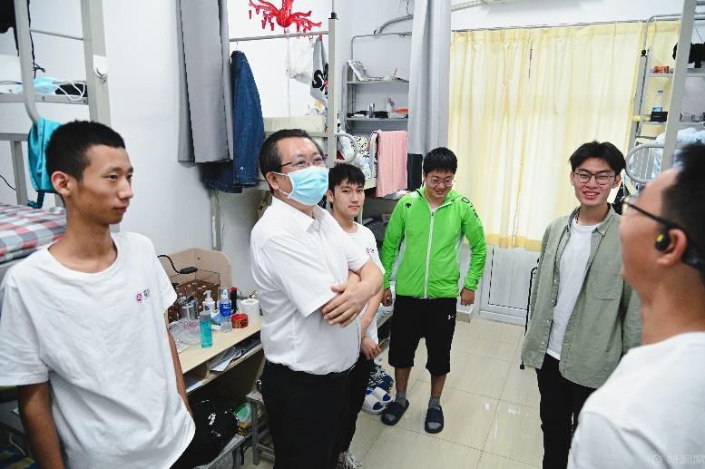 敲門行動,情暖到寢。9月14日,學校黨委副書記、校長張立峰來到馨齋學生公寓,與同學們親切交談,他叮囑要自覺做好個人防護,遵守好學校疫情防控要求,要遵守學生守則,不在宿舍吸煙、違規用電。他希望同學們堅持理想,志存高遠,珍惜韶華,刻苦學習,做一個有德有才可堪大用的時代新人。
