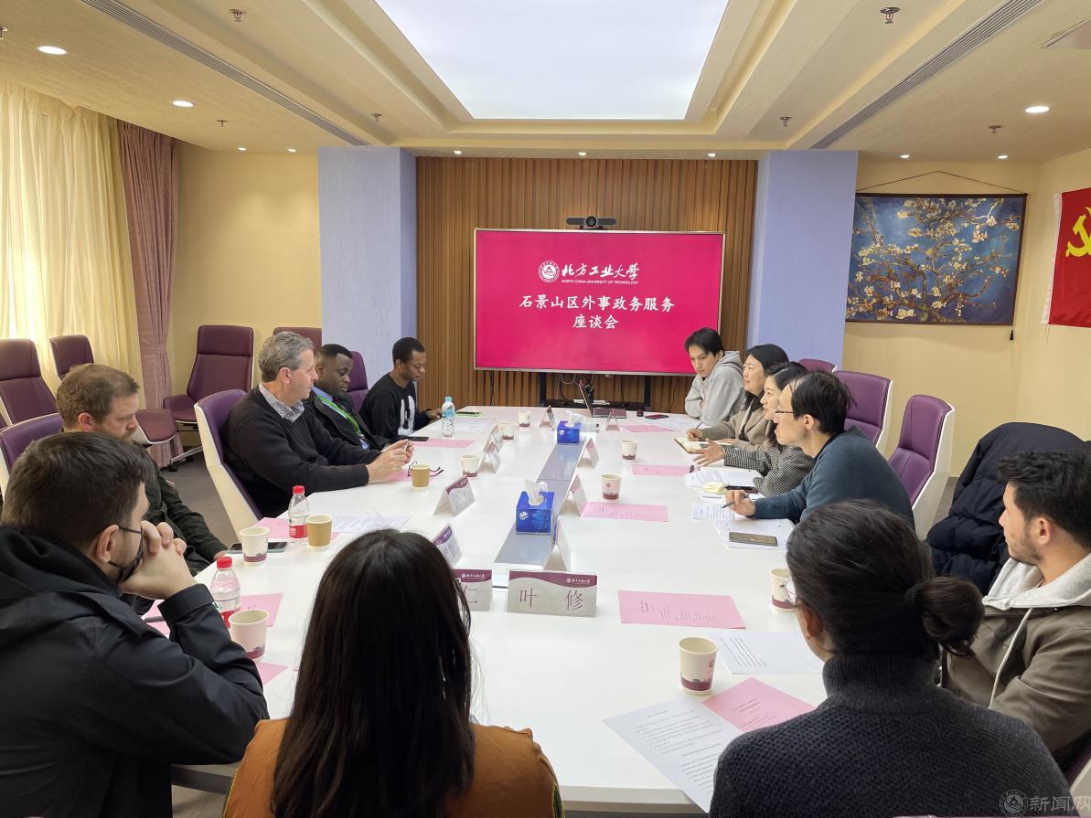 2月23日,石景山區(qū)人民政府外事辦公室副主任郝迪一行來我校開展涉外管理與服務(wù)滿意度調(diào)研活動,我校來自美國、英國的外籍教師以及俄羅斯、蒙古、烏茲別克斯坦、孟加拉國、津巴布韋等國家的留學(xué)生10余人參加了座談,國際合作與交流處相關(guān)負(fù)責(zé)人及工作人員陪同調(diào)研。