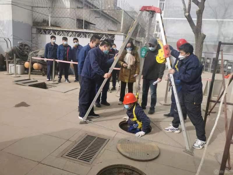 本次演練模擬了作業(yè)人員對中水站1號格柵污水井清掏污物殘渣時突然暈倒的突發(fā)情況?,F(xiàn)場作業(yè)人員將事故立即上報,啟動預(yù)案,開展應(yīng)急救援?,F(xiàn)場演練按照作業(yè)審批、安全交底、設(shè)置作業(yè)警戒區(qū)、清點設(shè)備、評估作業(yè)環(huán)境、使用安全設(shè)備和器材、穿戴呼吸器、維護(hù)現(xiàn)場治安等流程有序展開,并遵守“先通風(fēng)、再檢測、后作業(yè)”的原則,確保有限空間作業(yè)安全。
