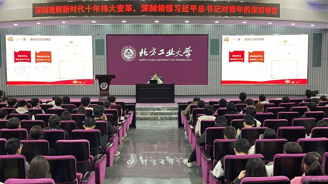 范玥老師介紹了我?!傲S一體”資助育人工作模式,并就2022-2023年度電控學院資助情況做了工作匯報,向同學們傳達我校始終堅持以“辦對學生成長最好的大學”為宗旨,堅持立德樹人根本任務,不讓任何一個同學因貧困而失學,把促進家庭經濟困難學生成長成才作為學生資助工作的出發點和落腳點,“讓每個孩子都有人生出彩的機會”。
