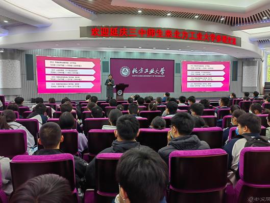信息學(xué)院段建勇副院長代表學(xué)校致歡迎詞,對延慶三中長期的支持與合作表示感謝,希望通過這次活動加深延慶三中師生對北方工業(yè)大學(xué)的了解,并歡迎廣大學(xué)子報考北方工業(yè)大學(xué)。信息學(xué)院微電子專業(yè)負(fù)責(zé)人張靜教授為來訪師生詳細(xì)介紹了我校的辦學(xué)特色和招生政策,國際學(xué)院宋偉副院長介紹了我校國際合作辦學(xué)和招生情況。