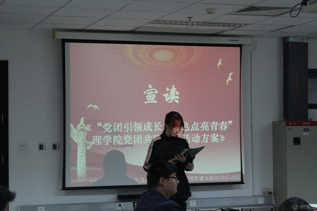 統計系本科黨支部委員龐靜雯宣讀《“黨團引領成長,紅色點亮青春”理學院黨團共建實踐活動方案》,詳細解讀了各階段的活動安排和工作任務。